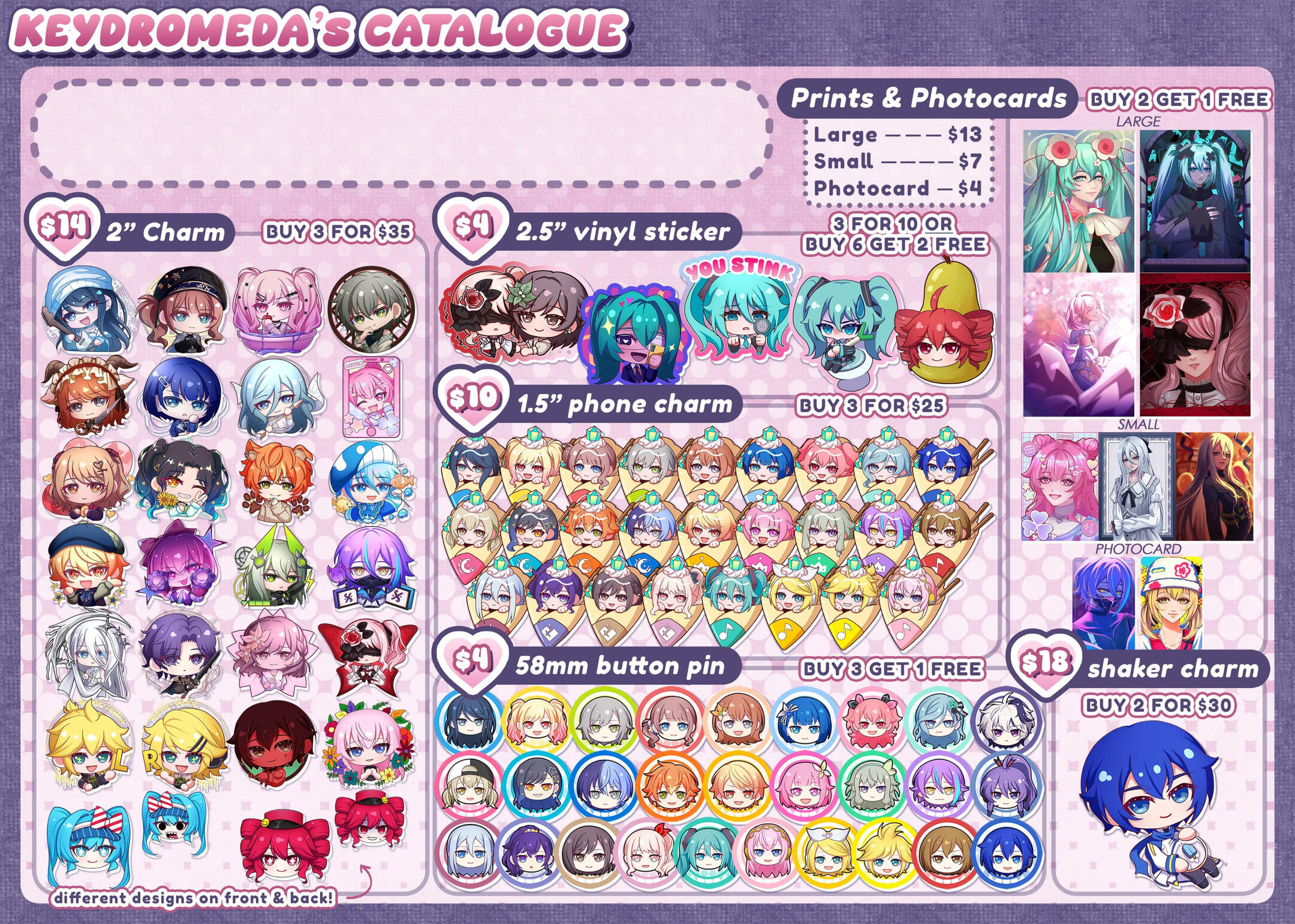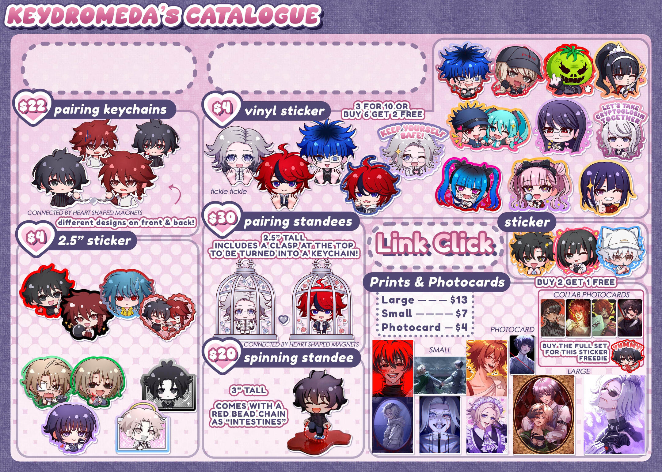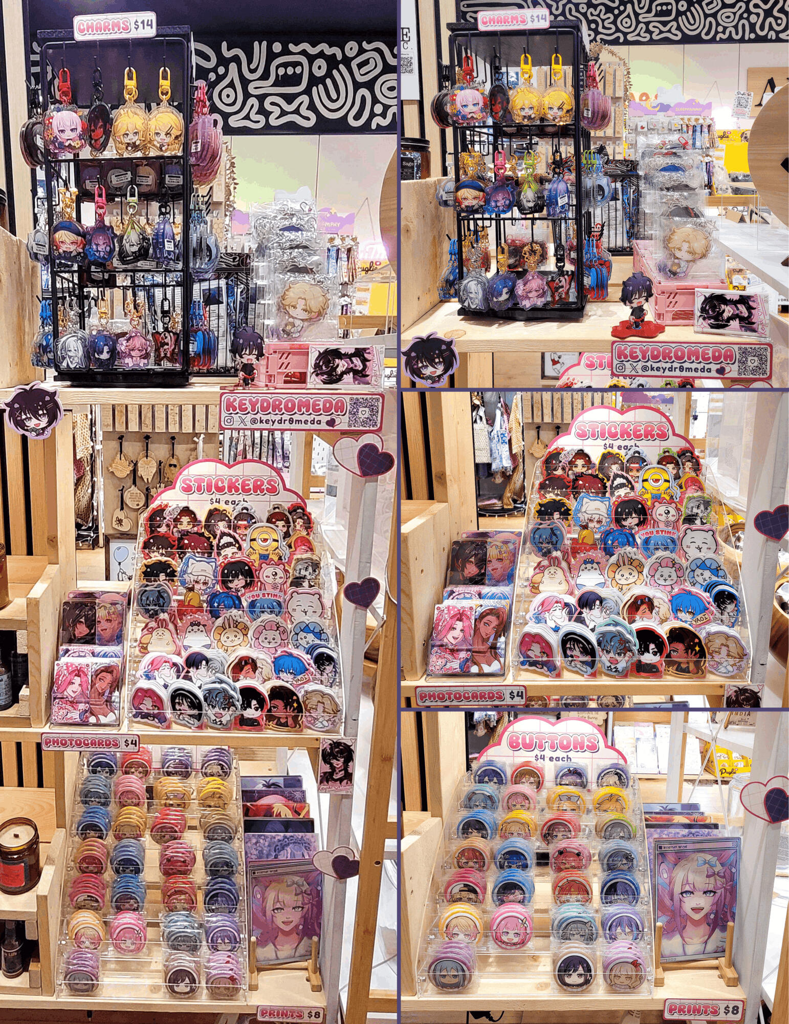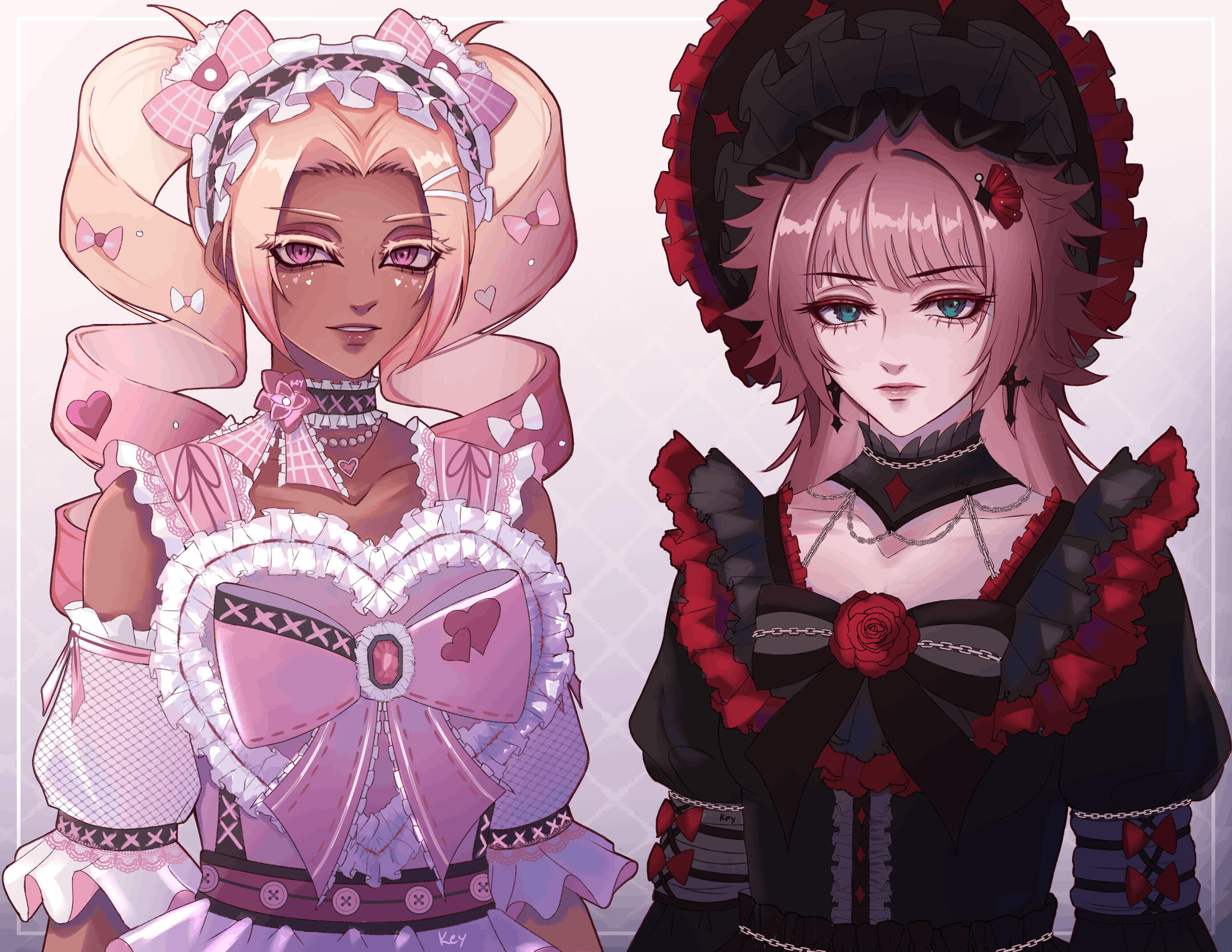 I'm Keyanna, a self-taught artist based in Alberta, Canada. I mainly draw art based on media franchises I like, though I frequently draw and design my own original characters as well! I enjoy experimenting with fashion, especially subcultures like lolita, ouji, jirai, and applying elements from those subcultures into my own works. At times, I incorporate horror aspects into my pieces; I enjoy making what is "pretty" yet simultaneously "scary". My work primarily consists of portrait-style drawings with a more dark and elegant feel, yet it sometimes still adds a hint of "cute" and "fun" into the mix. I also make chibi art and have created emotes / digital stickers for many online chat apps!My main art medium is digital art. I began drawing in 2021 as a hobby, and at the end of 2024, I began focusing on it as a potential career. Since I started Artist Alley in October 2024, I've tabled at over 15+ events, hosted two events, set up in over 5 consignment stores, and worked on merch collaborations with stores and other artists!I've hosted several fan-run events myself, such as fandom meetups and cupsleeve events! I coordinate merch creation, production, promotional art, and help organize activities, decor, and performances, alongside other event logistics. I believe that connecting with communities is an important part of my role as a local artist, and I hope to continue hosting and helping out with events!