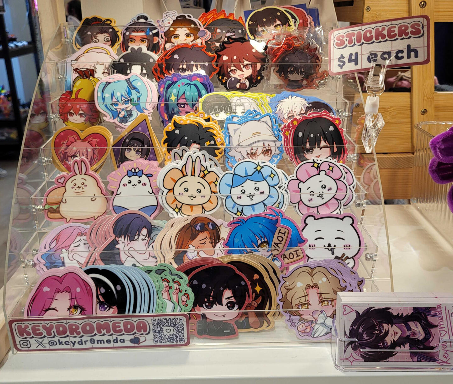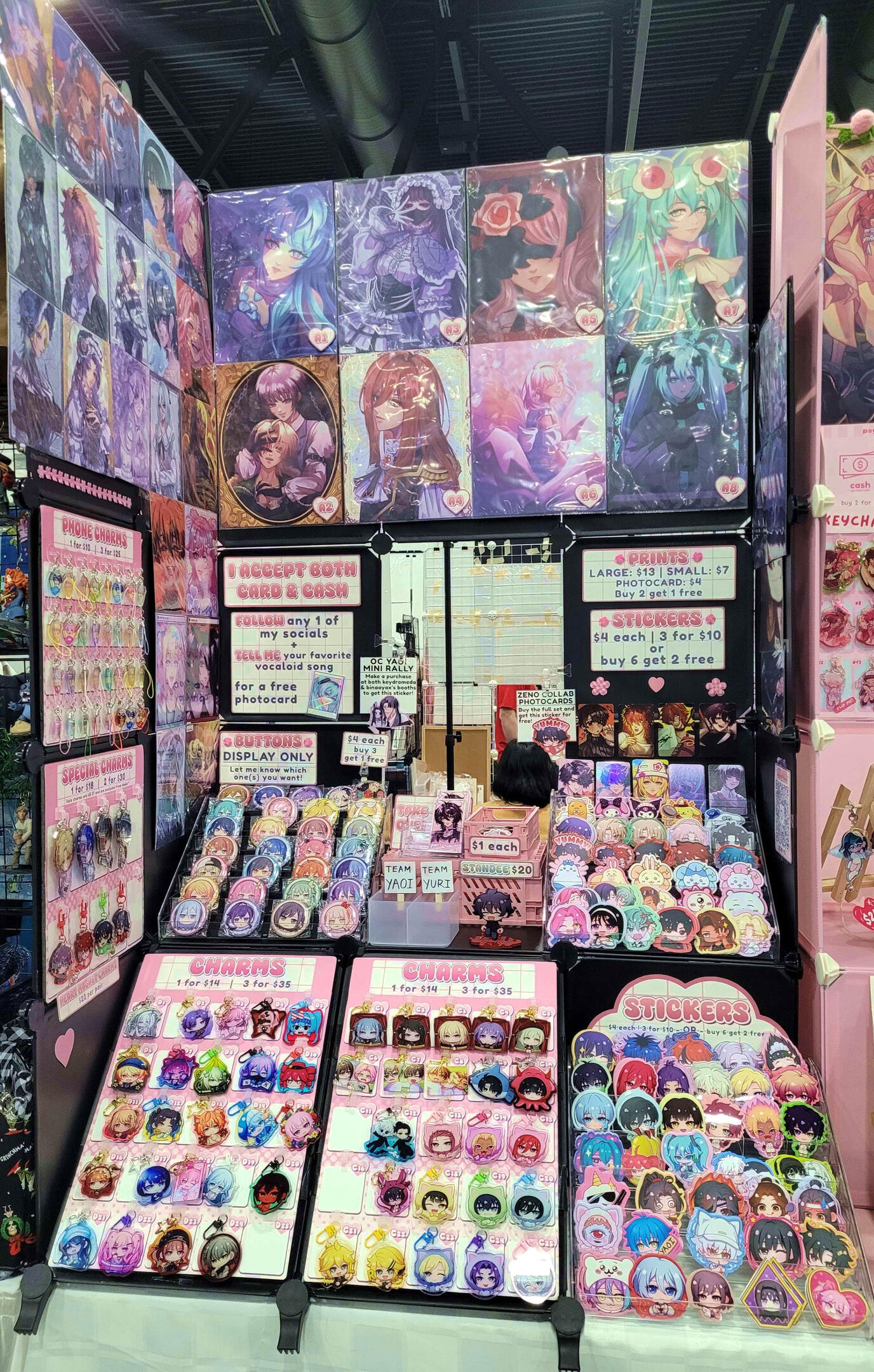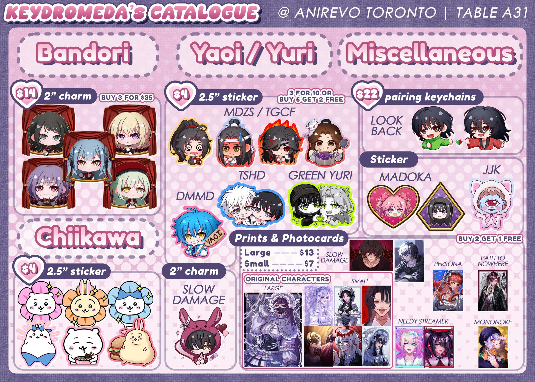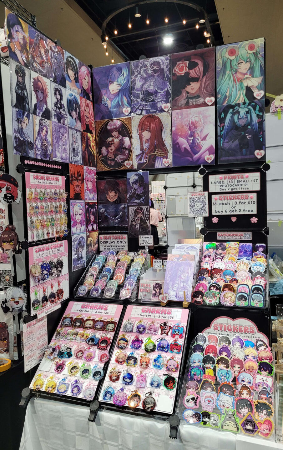 I'm Keyanna, a self-taught artist based in Edmonton, Alberta. I mainly draw art based on media franchises I like, though I frequently draw and design my own original characters as well! I enjoy experimenting with fashion, especially subcultures like lolita, ouji, jirai, and applying elements from those subcultures into my own works. At times, I incorporate horror aspects into my pieces; I enjoy making what is "pretty" yet simultaneously "scary". My work primarily consists of portrait-style drawings with a more dark and elegant feel, yet it sometimes still adds a hint of "cute" and "fun" into the mix. I also make chibi art and have created emotes / digital stickers for many online chat apps!My main art medium is digital art. I began drawing in 2021 as a hobby, and at the end of 2024, I began focusing on it as a potential career. Since I started Artist Alley in October 2024, I've tabled at over 15+ events, hosted two events, set up in over 5 consignment stores, and worked on merch collaborations with stores and other artists!I've hosted several fan-run events myself, such as fandom meetups and cupsleeve events! I coordinate merch creation, production, promotional art, and help organize activities, decor, and performances, alongside other event logistics. I believe that connecting with communities is an important part of my role as a local artist.